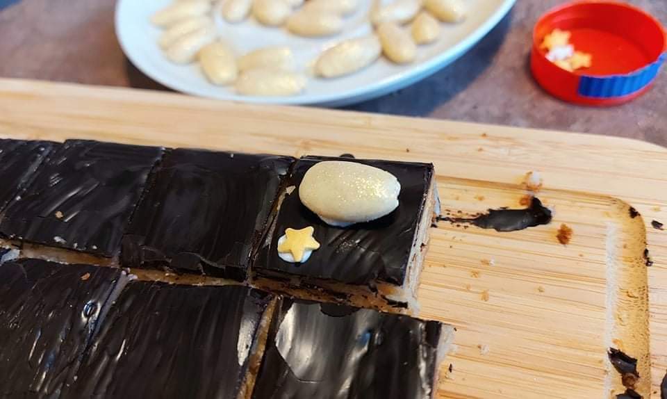 Ich habe es gleich nachgebacken, etwas modifiziert und daraus Baumkuchen-Konfekt gemacht. Das ist so lecker, dass ich es mit euch teilen möchte: